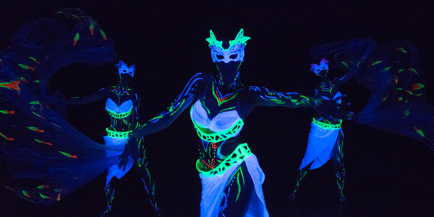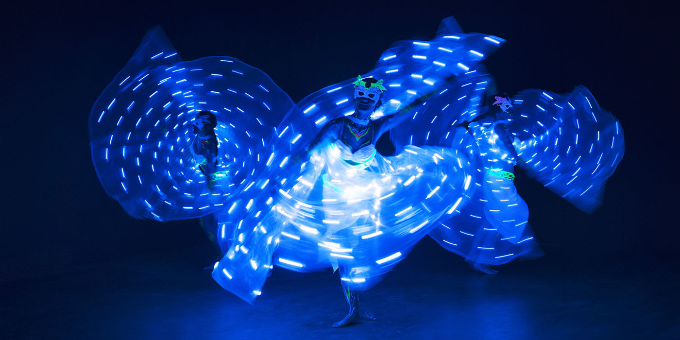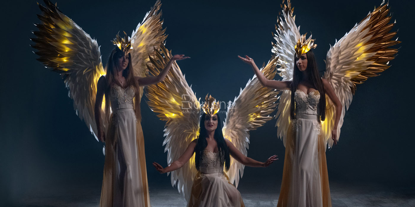 Танци с аксесоари – крила на Изида, светещи крила, воали, ветрила – феерия от цветове и форми.